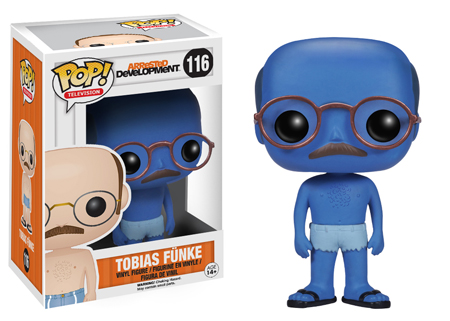 Funko announces that they will be releasing a LARGE assortment of POP! vinyl figures based on the characters of Arrested Development. Eight new Pop!'s from the Bluth clan, including a Blue Tobias Funke chase figure (pictured top)! Look for this assortment this June.