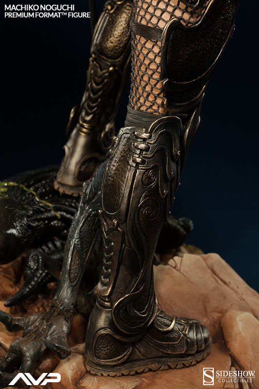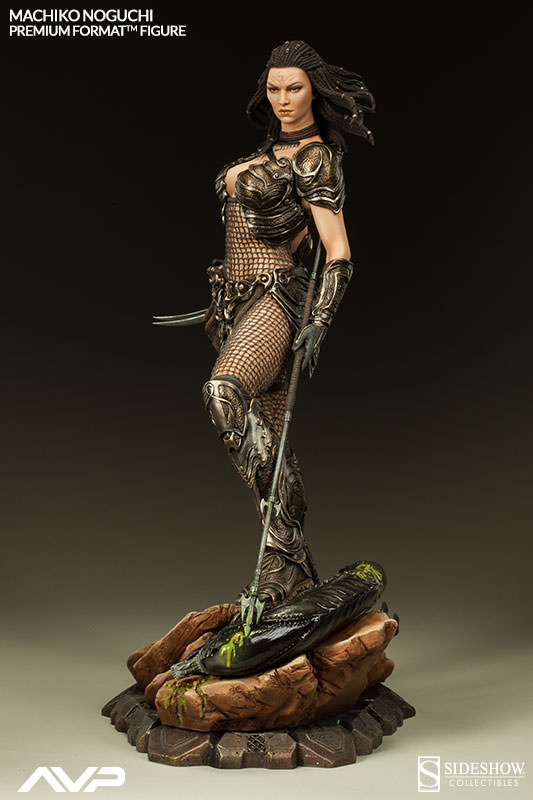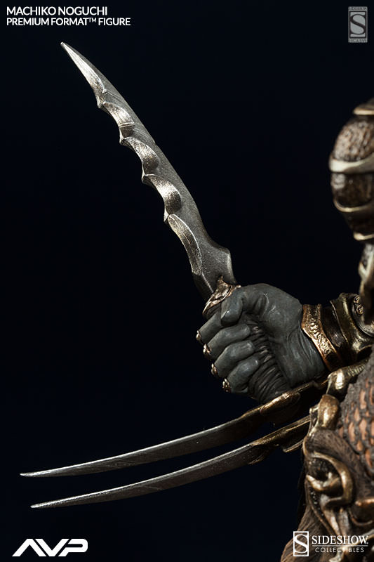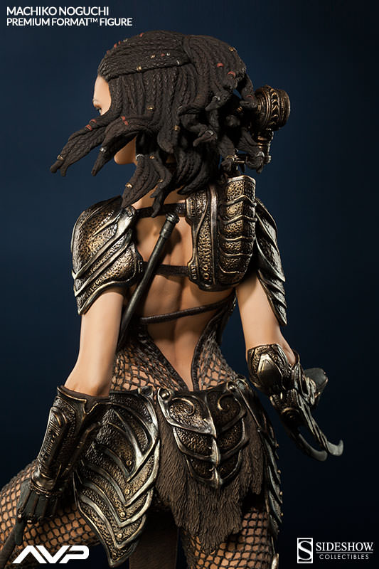 Standing triumphantly over a slain Alien, and armed with razor sharp wrist gauntlets, a combi-stick spear and shoulder-mounted plasma cannon, Machiko will be offered as both a standard release as well as a Sideshow Exclusive with additional ceremonial Predator knife swap-out weapon accessory.