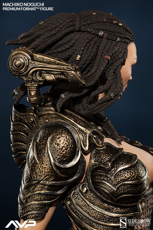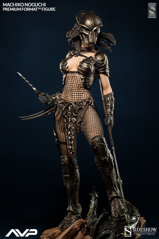 Sideshow presents the next entry in their growing Predator statue collection: Machiko Noguchi. Popularly known as the She-Predator by fans of the Aliens Vs. Predator franchise, Machiko is one of the few humans ever to be accepted by Predators as one of their own. Based on an original interpretive character study, Sideshow’s artists have envisioned the beautiful yet barbaric warrior in a customizable display that features interchangeable masked and unmasked portraits.