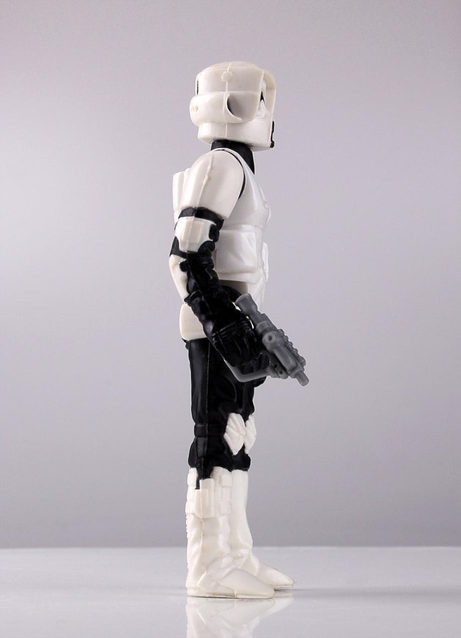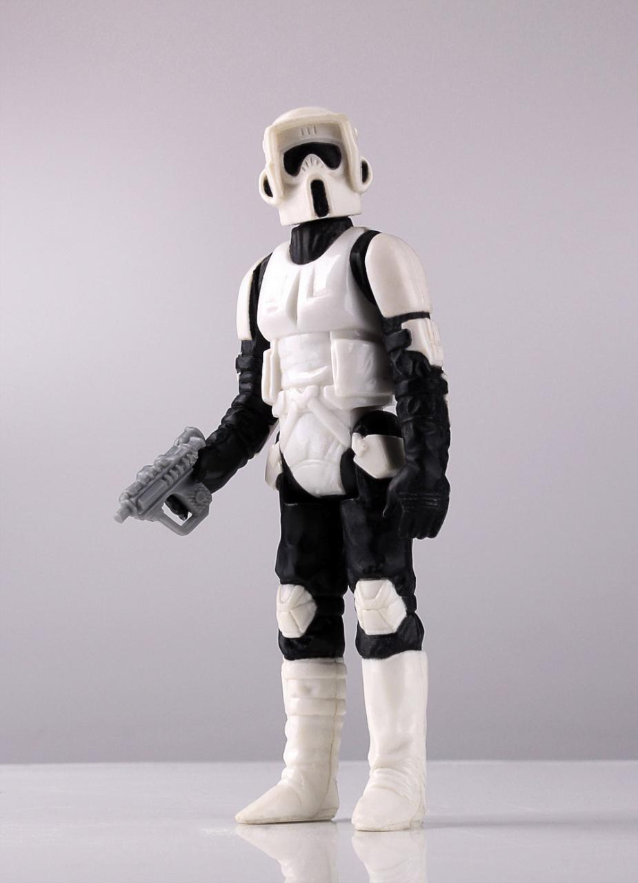 Digitally scanned from mint 3 ¾” Kenner originals and reproduced at a Jumbo size, no detail has been overlooked. Roto cast and made of durable plastics, this jumbo figure includes a faithfully reproduced Scout Blaster accessory! It even comes fully articulated!
