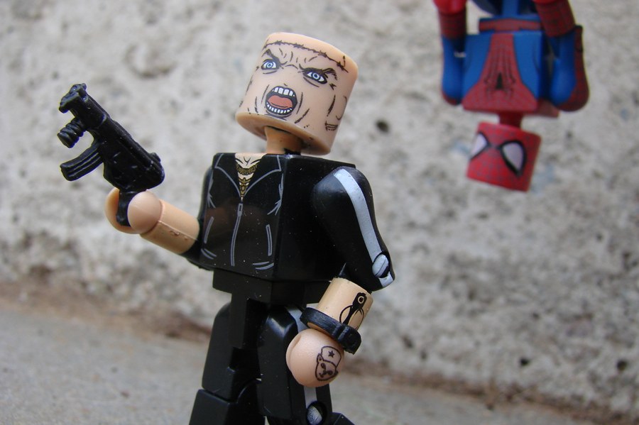 Spider-Man battles a grinning Green Goblin using his webline and megaphone accessories. Then a Battle-Damaged Spider-Man dons a fireman's helmet to take on a metallic Electro, with lightning attachments and an energy base. Peter Parker and Gwen Stacy pair up in the third two-pack, with a Spider-Man mask, backpack and phone, and the final two-pack gives us Electro's boss Alistair Smythe with a briefcase and a pre-Rhino Aleksei Sytsevich with a machine gun and an alternate pantsless pair of legs.