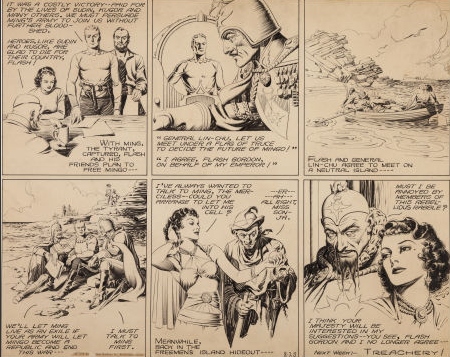 Another world record price was set in the auction for the highest price ever realized at auction for a piece of original comic strip art when Alex Raymond’s Flash Gordon Sunday Comic Strip Original Art, dated Aug. 28. 1938 (King Features Syndicate, 1938), a piece used to create a USPS 1995 comic strip classics stamp, decimated its $50,000+ pre-auction estimate to realize $215,100.