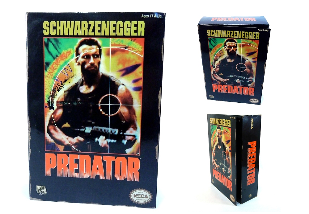 The thing that really sells this line is the brilliant retro-designed packaging. Styled to resemble the actual packaging used for the classic NES title, the fifth panel window boxes NECA's Classic Video Game Appearance figures come in are drop dead awesome. NECA's Predator pack appears pretty much as it did in 1989 on game store shelves, with a thermal image of Arnold Schwarzenegger's Dutch caught in the Predator's crosshairs. The NES Predator game wisely (deceptively?) used the same cool movie poster that attracted fans to the 1987 film.