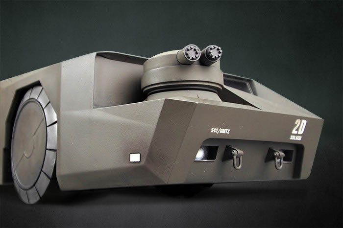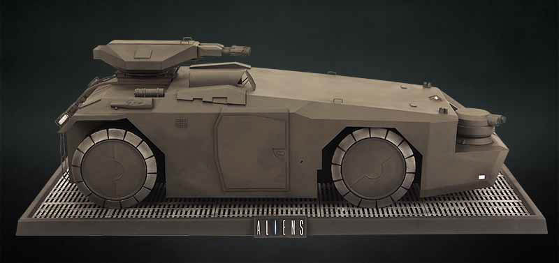 The APC features moveable gun turrets and rotating wheels, and is authentically weathered for added realism. It is complete with a separate Aliens themed display base, designed to replicate the floor tiles of the Sulaco.