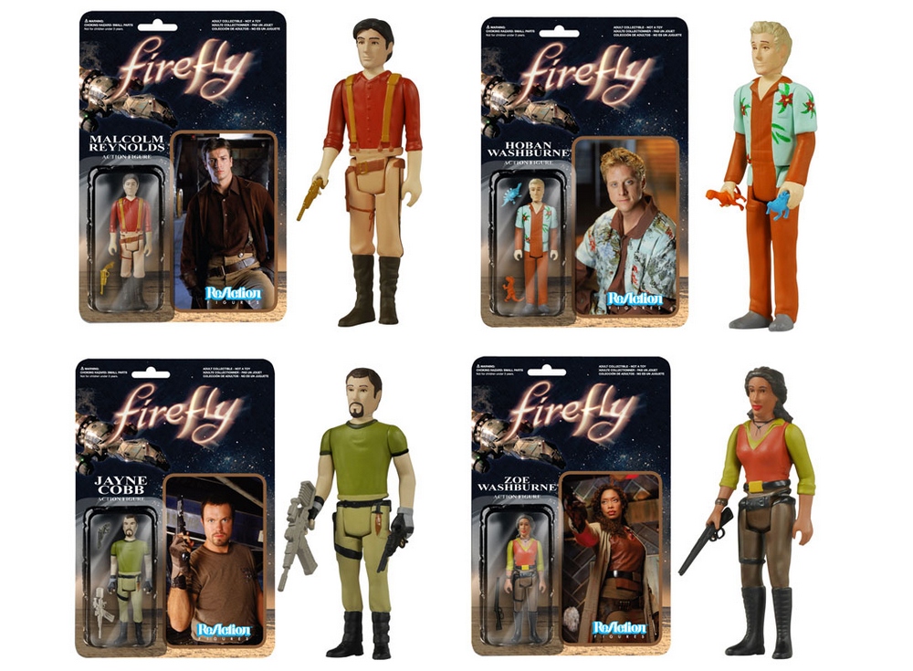Funko's latest ReAction retro figure assortment is arriving this August based on the hit Joss Whedon sci-fi series: Firefly. Characters to collect include Malcolm Reynolds, Hoban Washburne, Jayne Cobb, Zoe Washburne and Kaylee Frye. Each figures comes with it's own unique removable accessories... Hoban Washburne even has a few toy dinosaurs!