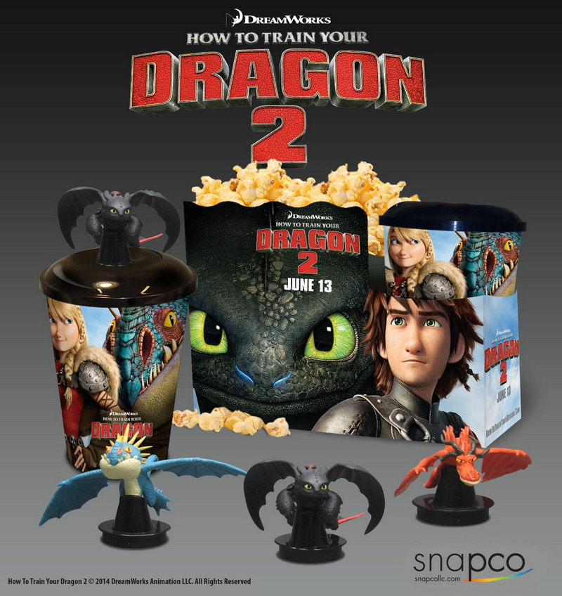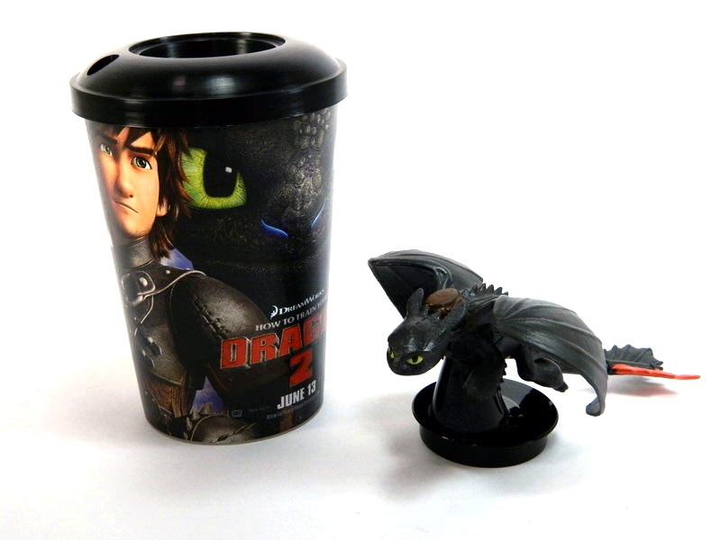 To celebrate the July 13th premiere of DreamWorks Animation's How To Train Your Dragon 2, Snapco has created three collectible dragon cup-toppers. Available exclusively at movie theaters nationwide, young Vikings and Dragon Trainers can get their hands on a snack pack that includes popcorn and beverage all presented in a How To Train Your Dragon 2-themed tote and cup. The reusable collectible cups feature one of three detailed plastic dragon figures, including Stormfly, Hookfang and the film's starring flying hero, Toothless. Check out more photos of the Toothless cup-topper in our gallery below!