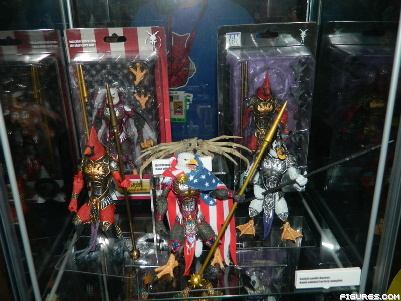 Finally, sci-fi fans had lots of cool Power Lords to check out including the recently released carded wave one and beyond. On display were prototypes of the Sydot varieties, Disguyzor, Raygoth, and the Power Soldier Assassin. The latter two will most likely comprise the next wave of figures, and further waves will include one alien and one Power Soldier variant. The Assassin is nearly complete and will include multiple weapons and possibly variant backpack and head, and Raygoth is coming along nicely with interchangeable chest parts; the Horsemen are still working on how his hands will work (either articulated or interchangeable) and how they'll fit with his iconic weapon. Stay tuned to Figures.com for continued coverage of these awesome figures!