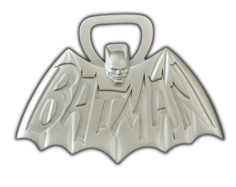 Nananananana BATMAN! After a long day of fighting crime and a long night of doing the Bat-tusi, Batman needs to cool off with a frosty beverage. And now you can party like a superhero with this solid metal bottle opener in the shape of the iconic Batman TV show logo! This 4-inch opener comes packaged in a collector case with a full-color wrap. Designed by Barry Bradfield. (SRP: $18.00, item #FEB142059)