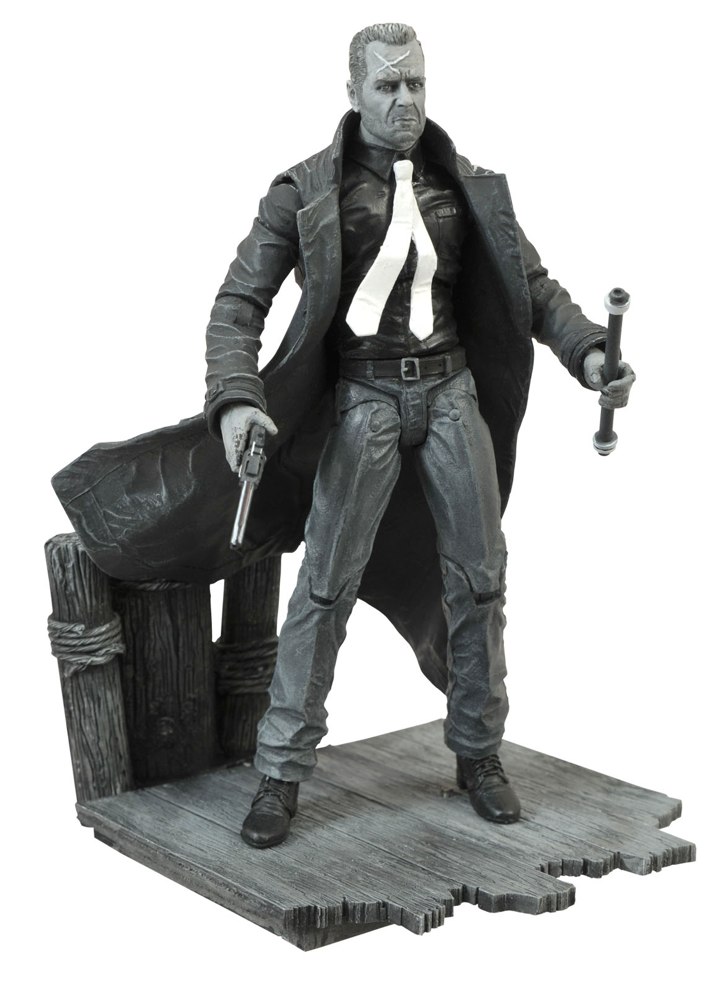 Walk down the right back alley in Sin City and you can find anything, but you don't need to live in Sin City to get high-quality Select action figures of the movie's main cast! The first series of 7-inch-scale, fully poseable figures from DST includes Marv, Hartigan and Nancy, all based on their appearances in the 2005 feature film. Each figure comes packaged with a deluxe display base and accessories in the famous Select display packaging, complete with spine reference artwork. Sculpted by Jean St. Jean. Marv Figure (SRP $24.99, item #FEB142055), Hartigan Figure (SRP $24.99, item #FEB142056), Nancy Figure (SRP $24.99, item #FEB142057)
