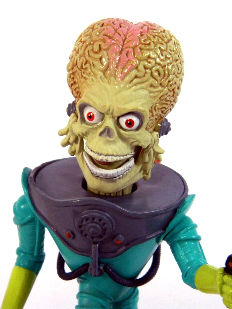 While funny, the Baracula Jr. included in the Con-exclusive 2-pack wasn't my thing. My sole interest was in the Martian. Lucky for me, Heroes in Action was offering the Mars Attacks Jr. figure individually blistered! While non-poseable, the figure delights with its cool retro-alien sculpt - the perfect addition to any Mars Attacks collection. Check out more photos of this figure at the link below.