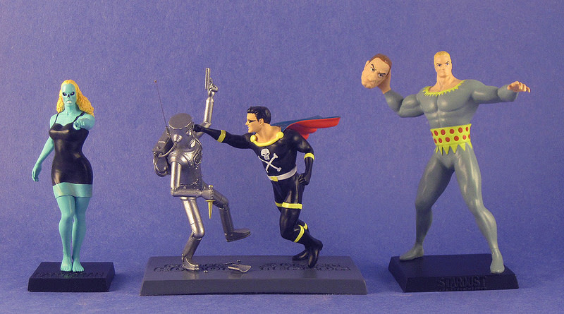 The Original Golden Age Black Terror vs. Killer Robot features a gold foil label, individual numbering, and comes in a white box with a color printed sleeve and a protective soft black foam interior. To avoid breakage in transit, the figures and base are packaged separately, requiring a small amount of superglue to assemble. It can be purchased directly from Goldenagefigurines.com, through eBay, or on Amazon. Tech savvy collectors can also purchase it with Bitcoin. Prices vary from $28.99 to $33.99 USD, depending on which outlet you purchase from. Only 175 produced, with less than 50 currently remaining in stock; there will be no second edition.