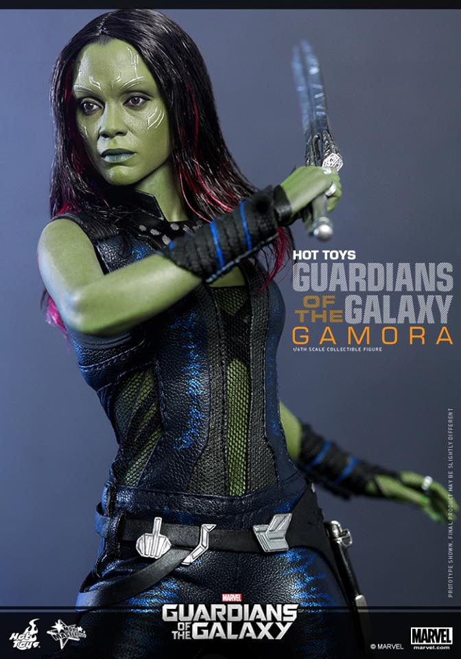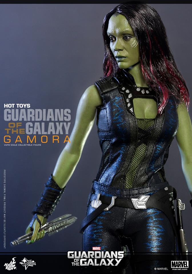 The movie-accurate Gamora collectible figure is specially crafted based on the image of Zoe Saldana as Gamora in the movie, featuring the newly developed head sculpt, highly detailed costume, weapons and accessories.
