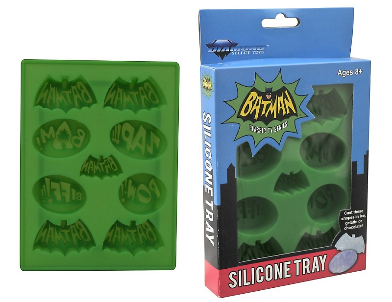 Bang! Zok! Pow! Add some punch to your punchbowl with this silicone tray inspired by the Batman Classic TV Show! This bright green tray casts up ice, gelatin and chocolate in the shape of the iconic Batman logo, as well as the show's famous sound effects. Unless you're Mr. Freeze, freezing things has never been so fun! Comes packaged in a full-color box. (Item #APR141981, SRP: $15.00)
