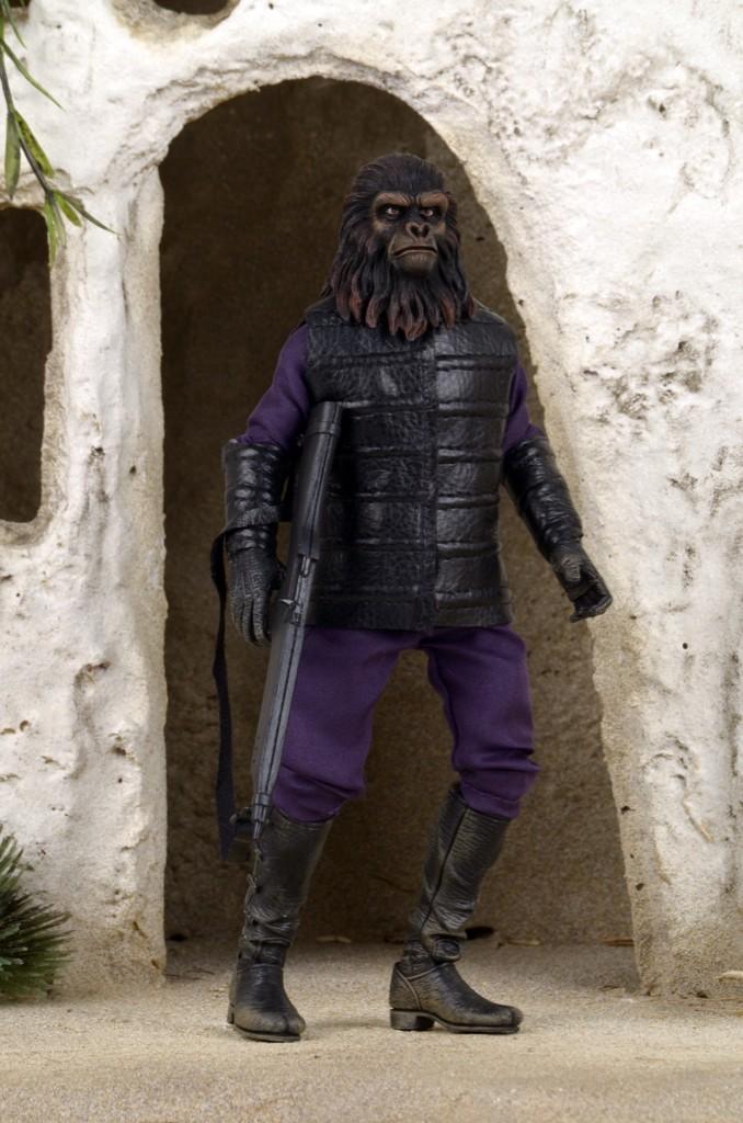 NECA reveals that their Planet of the Apes license will soon be used in their 8" Mego-style action figure line. Pictured is a look at the Gorilla Soldier, coming this January.