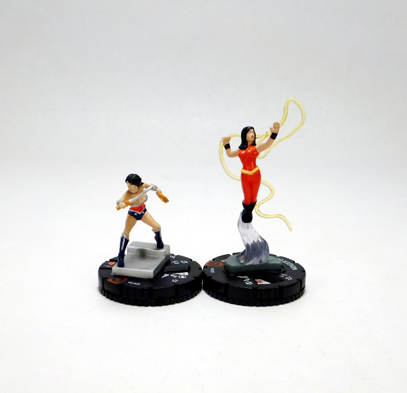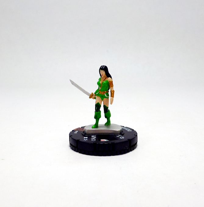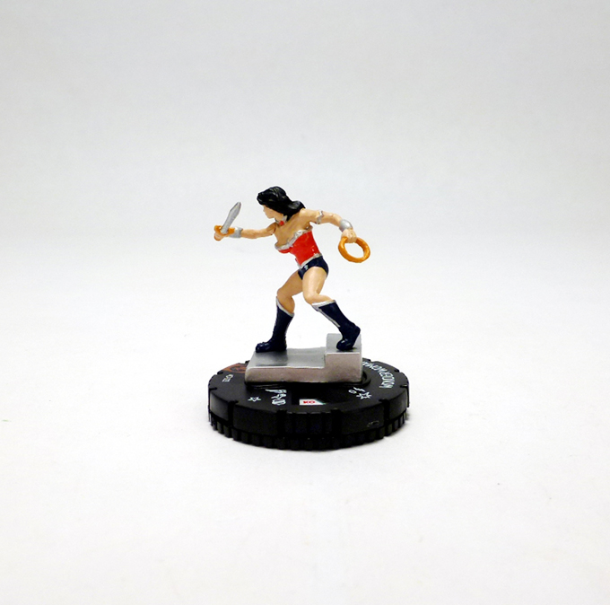 Following up after Gen13 comes the Justice League OP kit with three pretty fantastic ladies. Also hailing from the Teen Titans set team base packs are Wonder Woman and Wonder Girl, with Black Canary being the new addition. Wonder Woman offers a new version of the Justice League member, featuring the Amazon advancing down a short step with her sword and magic lasso at the ready. In addition to the Teen Titans set this sculpt has also appeared in the Justice League Strategy Game, and both of those figures clocked in at 150 points with the Justice League team ability. There will be a full reveal of this new Wonder Woman soon on HeroClix.com, but right off the bat we can see that she’s gotten a power boost at 180 points with dual Superman and Mystics team abilities and Indomitable!