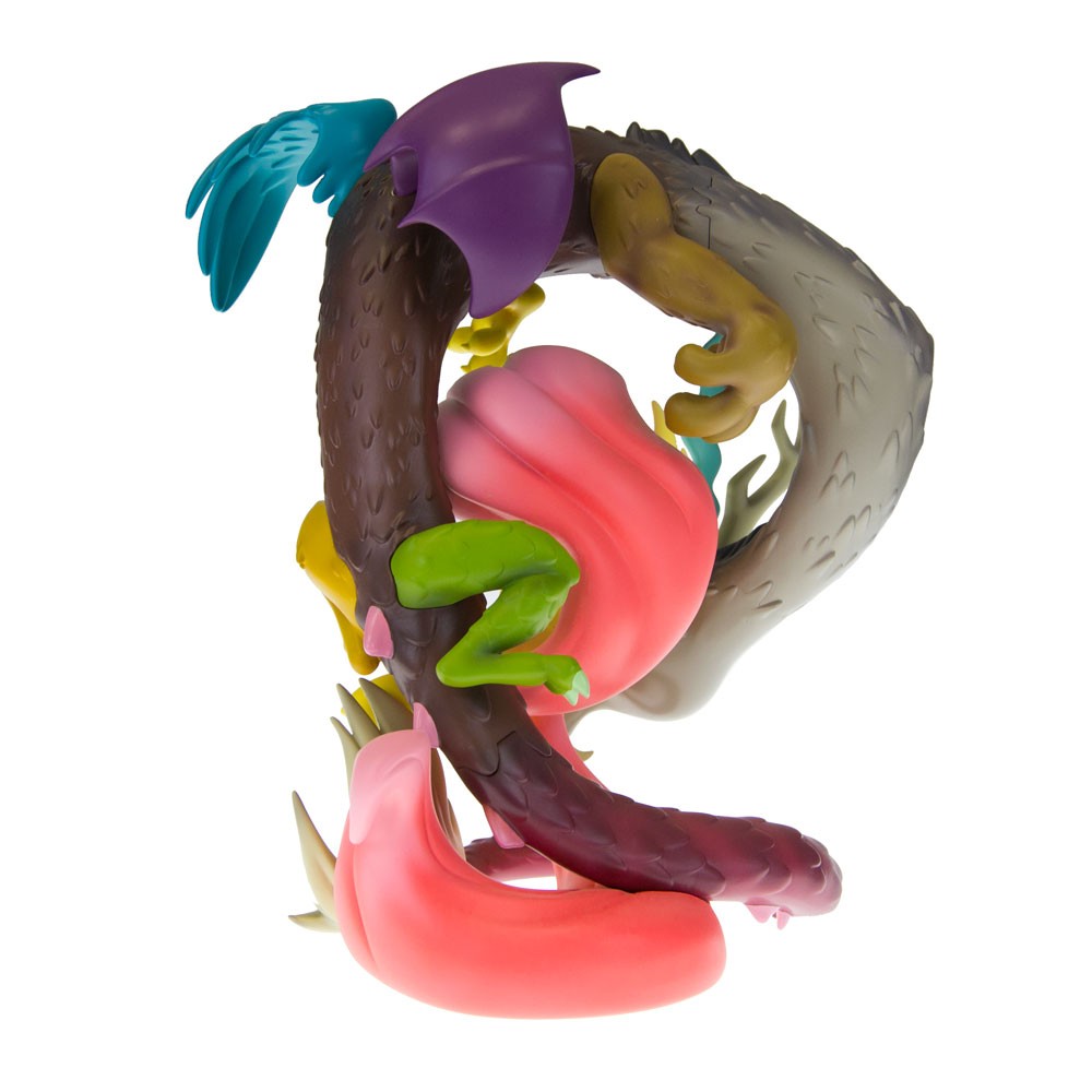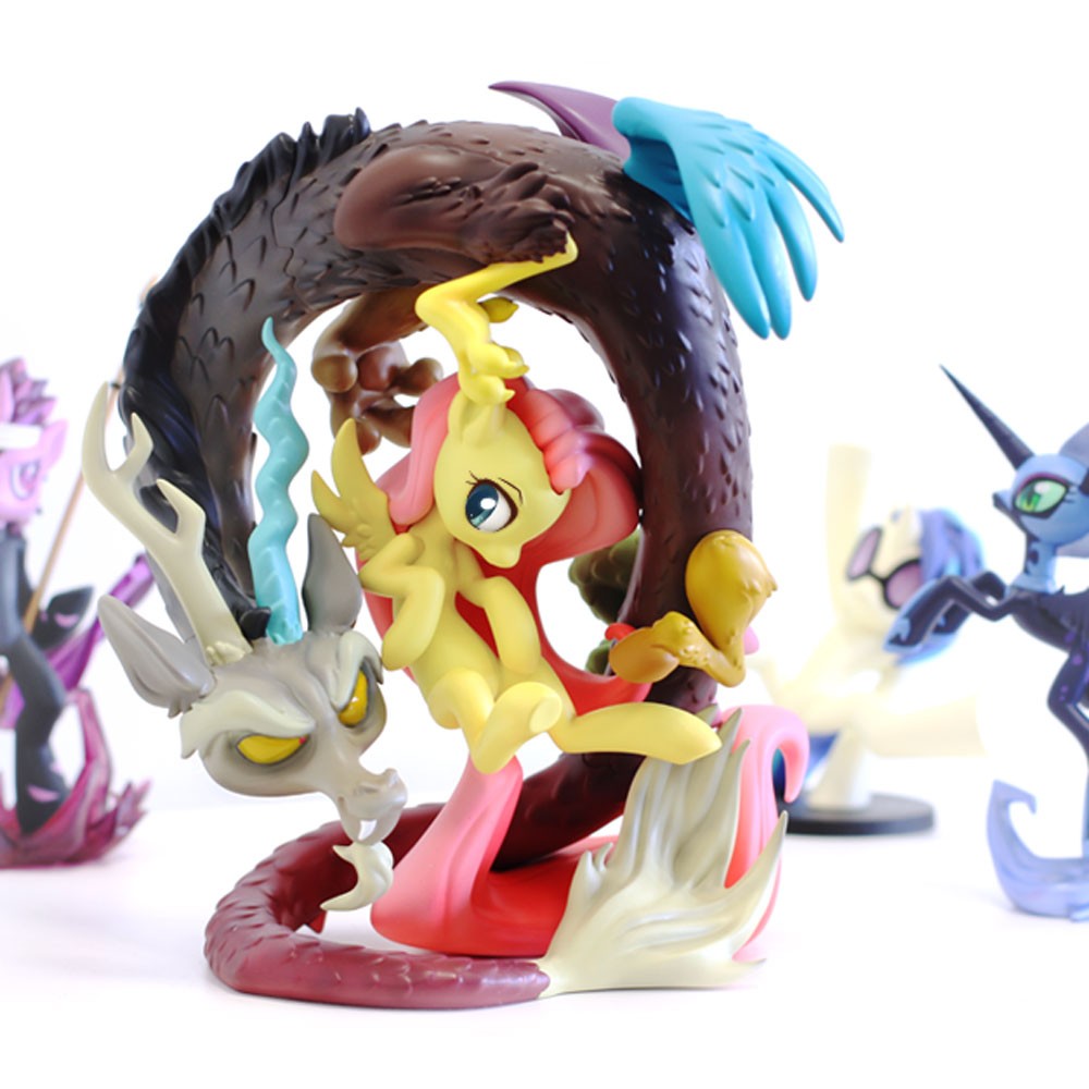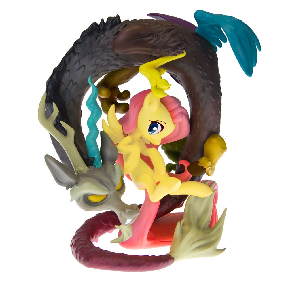 It’s no secret that My Little Pony is one of the hottest properties in the world, and it got a unique partner when WeLoveFine began producing unique vinyl figures of ponies in a really cool animated style. Now, after producing nearly a dozen of those WeLoveFine has revealed its first ever resin statue, a tremendous limited edition presentation of fan favorites Fluttershy and Discord called Discord Flutter On! For those who may not be familiar with them, Fluttershy is the soft-spoken resident lover of all animals while Discord is essentially a god of chaos (in part patterned after “Q” from Star Trek and voiced by John de Lancie!). The resin piece bring together the two unlikely friends in a complex presentation with the dragon curled around the pony as designed by WeLoveFine’s incomparable Sajira. The statue is 8 ½ inches tall and will come in a custom box with numbered certificate of authenticity when it arrives in March. Discord Flutter On is strictly limited to only 1,200 units and there will be NO variants.