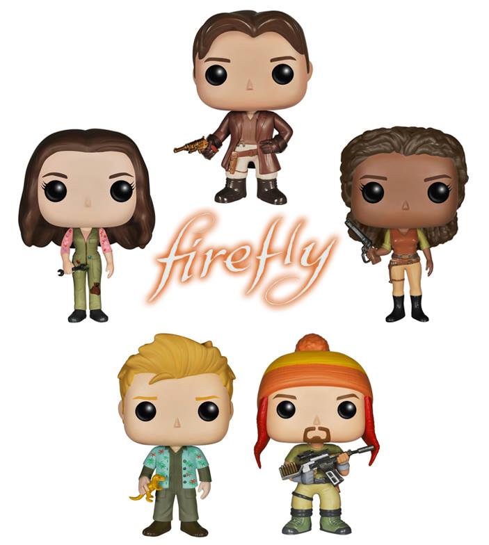 In a follow up to their ReAction Firefly line, Funko brings collectors the beloved sci-fi gang as a Pop! vinyl figure series. These Pop!'s are a darling take on the classic Serenity crew, including Captain Malcolm Reynolds, Zoe Washburne, Hoban Washburne, Jayne Cobb, and Kaylee Frye.