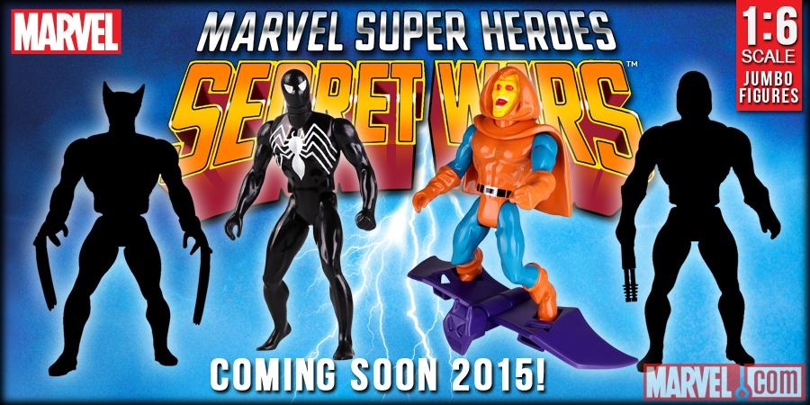 Marvel.com breaks the news that Gentle Giant is producing a new series of jumbo figures based on Mattel's popular Secret Wars action figure released back in the '80s. Like their Jumbo Star Wars figures, Gentle Giant has digitally scanned the original figures and reproduced them in a towering 12" scale. Roto and injection molded and made of durable plastics, these fully-articulated jumbo figures include a faithfully re-produced lenticular shield. To further capture the vintage feel, Gentle Giant has packaged each figure with a Secret Wars-inspired backer card featuring original photos and artwork.