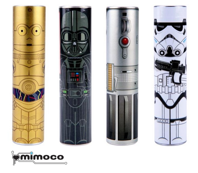 Coming from a galaxy far, far away... Mimoco's new Star Wars X MimoPowerTubes. From the makers of the Mimobot designer flash drive series comes their answer to a universal backup battery, the 2600mAh MimoPowerTube. This new charger collection features a licensed Star Wars theme, including well known characters Darth Vader, Stormtrooper and C-3P0, as well as Luke Skywalker's iconic lightsaber hilt. Each Star Wars MimoPowerTube includes a carrying pouch and charging cable with adapter tips for MicroUSB, Apple Lightning and 30 pin devices.