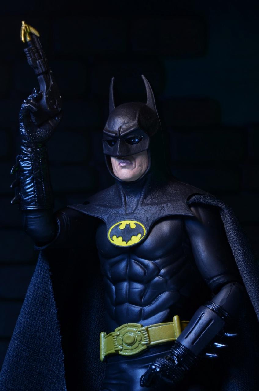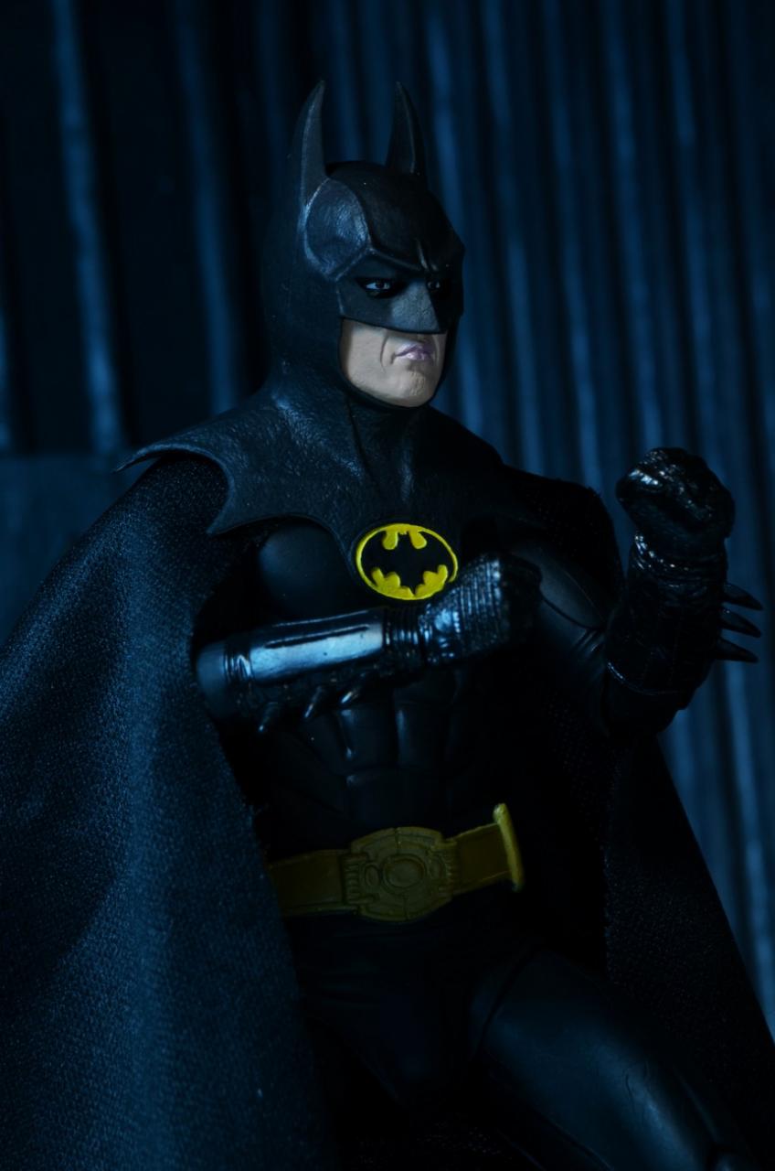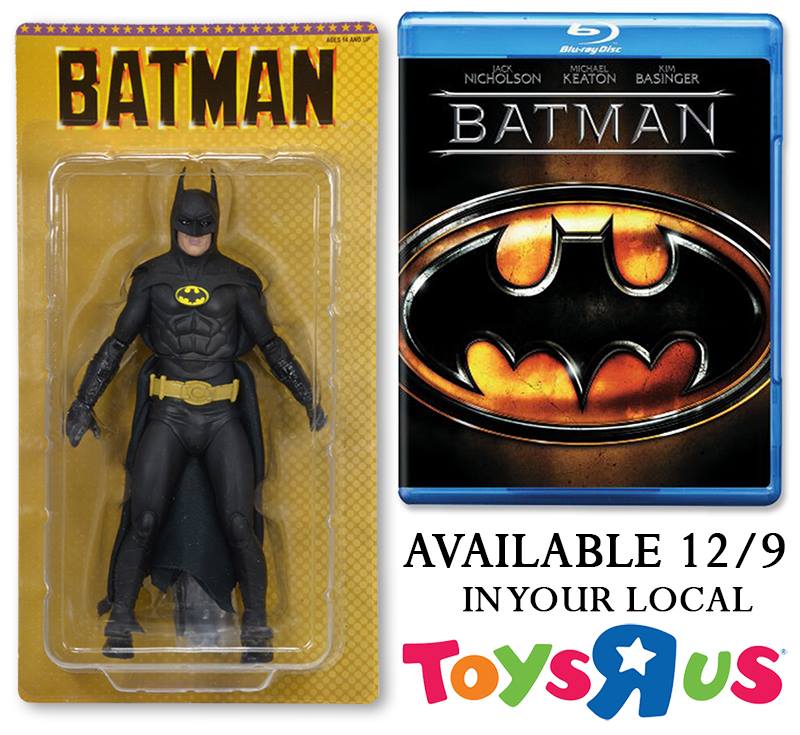 As previously announced HERE, NECA is bundling a 7" Michael Keaton Batman action figure as part of the Batman (1989) Blu-ray release. Available in Toys"R"Us stores today (12-9), the bundle is priced at $24.99. The promo figure features over 25 points of articulation, plus removable cape, Batarang and Spear Gun accessories. Pictured in our gallery below are new images of the Keaton Batman figure courtesy of NECA.