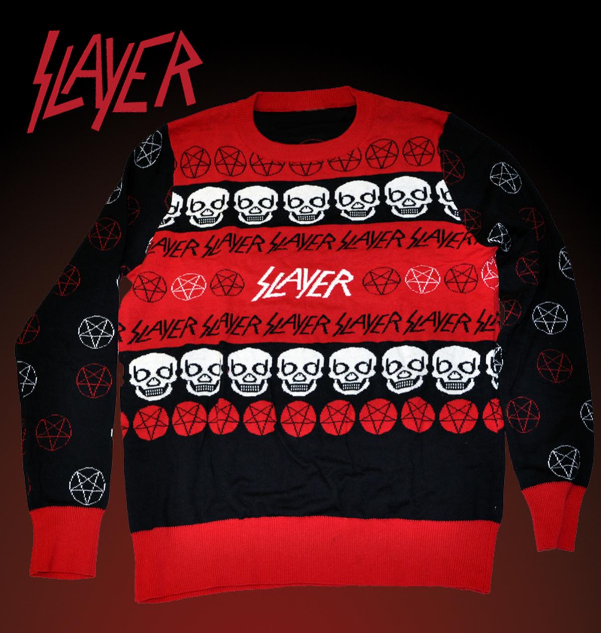 Locoape, a division of Toynk Toys LLC, announces today that they have entered into another agreement with Global Merchandising Services who represent the worldwide merchandising rights for Slayer. Locoape will again be producing the now iconic and annual Slayer holiday sweater. Yes, the limited edition ugly metal sweater that started it all is back!