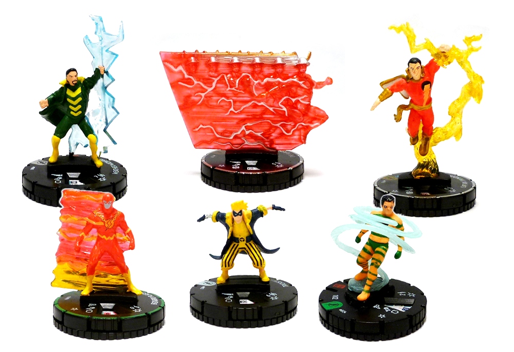With a set full of speedsters and their often flamboyant and flashy enemies it should come as no surprise that there are quite a lot of amazing looking figures in Flash. WizKids has really stepped in up when it comes to capturing the sculpts of the various Flashes and their enemies, and the use of speed trails and duplicate effects is here is pretty awesome. Even the Flash who’s standing still (Barry), radiates a trail of Speed Force energy and lightning, and the others just up the ante! All of them look great, but it’s the Kingdom Come Flash that takes the cake with his wall of constantly moving duplicates melded together; on the villain side you’ve got even more cool effects on figures culminating in the visibly vibrating Zoom and the hurtling Professor Zoom. There’s some truly great texture work in Flash with the padded armor of the Samuroid, melty and burned skins of Tar Pit and Heat Wave respectively, and of course the armor and demonic skin of Etrigan. And while there are amazing sculpts in the upper echelons of the set like super rare Captain Thunder flying into a column of lightning, there’s great stuff to be found in every booster from the sleek armored forms of the A.R.G.U.S. Agent and Mob Rule as well as the dynamic Trickster in the commons to the laid back Top spinning within his energy vortex in the uncommons and the rare Weather Wizard wielding his staff to call down the storm. As always, special care has gone into making the chases exemplary figures, and the Trinity of Sin members rock super detailed sculpts with the Question standing out in particular.