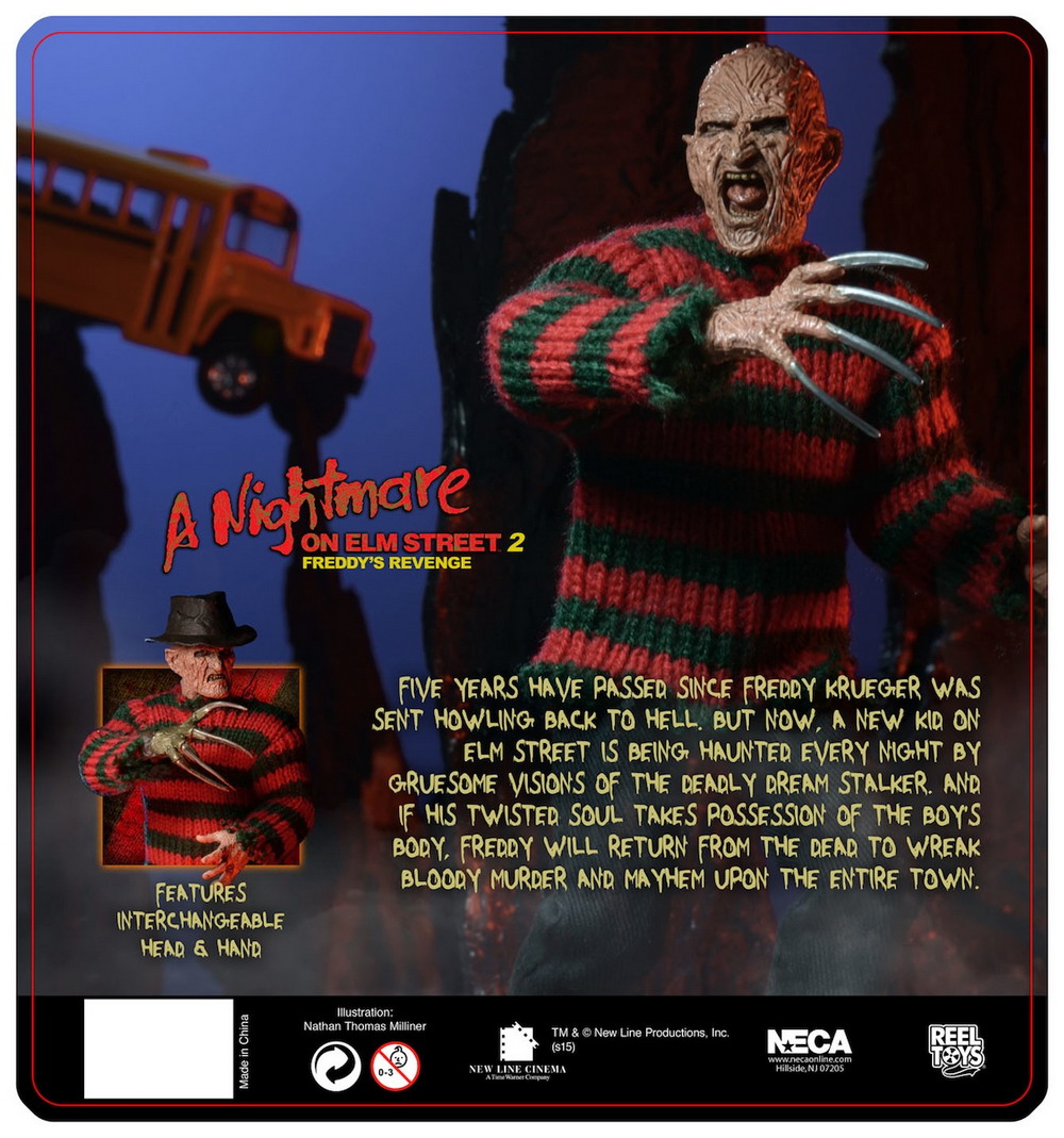 NECA is releasing a new version of Freddy Krueger as part of their 8" Retro-Style Action Figure line, this time the crazy clawed killer as seen in 1985's A Nightmare on Elm Street 2: Freddy's Revenge.