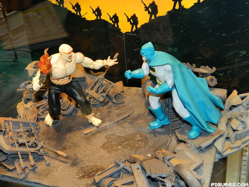 A wall of displays at Mezco’s New York Toy Fair 2015 booth held all sorts of goodies, but in two standalone cases featured the amazing figures of the One:12 Collective! The previously seen Batman was on hand in all three versions, and joining him were both 2000 AD’s Judge Dredd and the villainous Mutant Leader from the Dark Knight Rises comic. Like Batman before them these elite 6 inch scale figures come packed with tons of articulation, real clothing, and great accessories. Dredd’s Lawmaster motorcycle is planned as well, although it’s too early to know what sorts of features it will have (possibly lights/sounds, etc.). For the Mutant Leader too Mezco is working on a variety of accessories and alternate parts, and the figure may come in different variants. Lastly, the plan for the One:12 Collective is to jump around when it comes to licenses rather than release multiple characters from the same property all in a row. So, just because Dredd is coming out and then they’re moving onto other things doesn’t necessarily mean we won’t get more 2000 AD characters in the future!