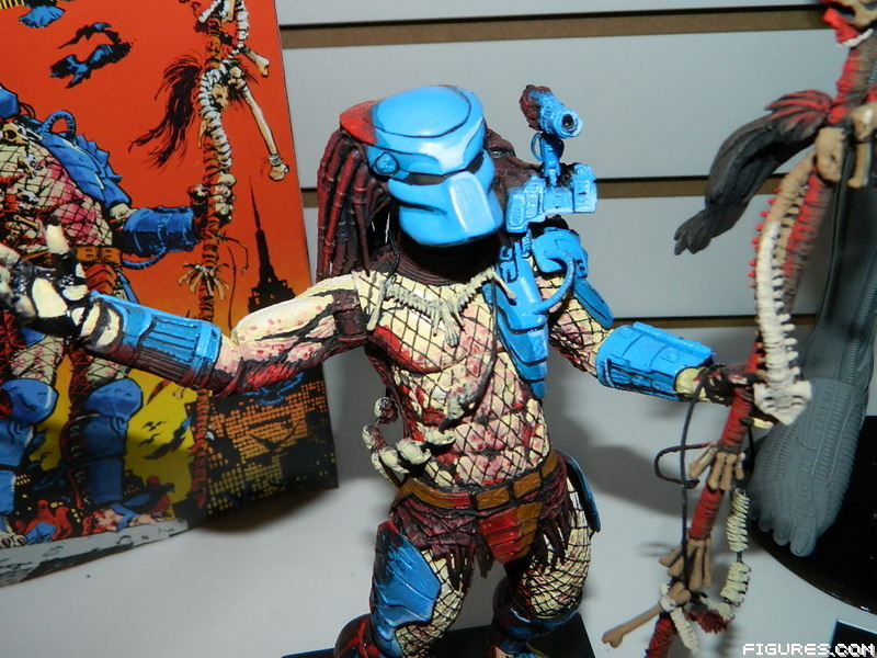 NECA is the undisputed king of Predator figures, and that was proven once again at New York Toy Fair 2015 with glimpses off hot upcoming products. For those of you keeping track this year marks the 25th anniversary of the Predator’s appearance in the pages of Dark Horse comics, and to celebrate NECA is bringing you a figure with a fantastic new deco based on the very first cover, and that cover forms the front of the figure’s box! This striking alien hunter in tan, red, and blue (with weapons and trophy) is scheduled for release in June and will also include a reprint of the original comic. Another upcoming special release is the City Hunter from the Predator 2 video game, the latest in NECA’s hit line of figures based on their game appearances.