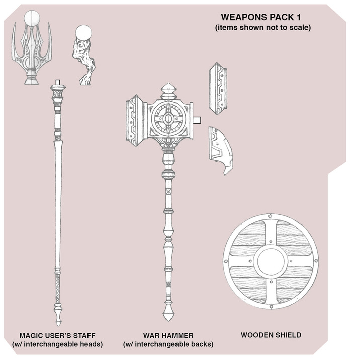 Also revealed at the same stretch goal level as Sir Valgard are sketch images of a new weapons pack (Weapons Pack 1) which will be available as an add-on for only $10.00 each worldwide with shipping included.