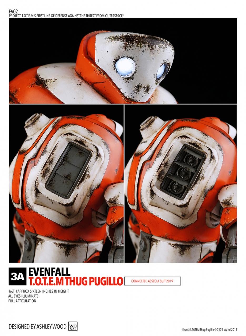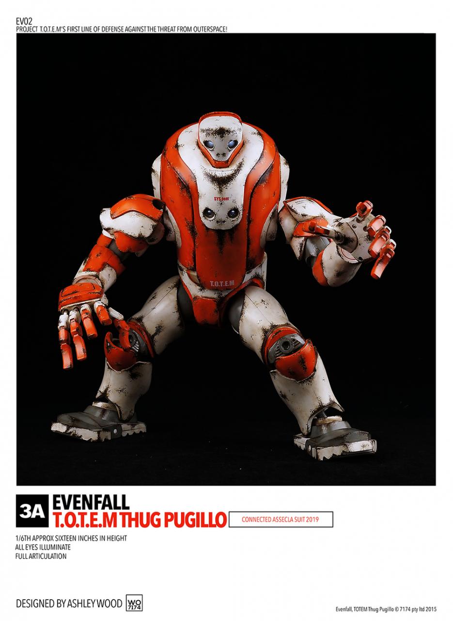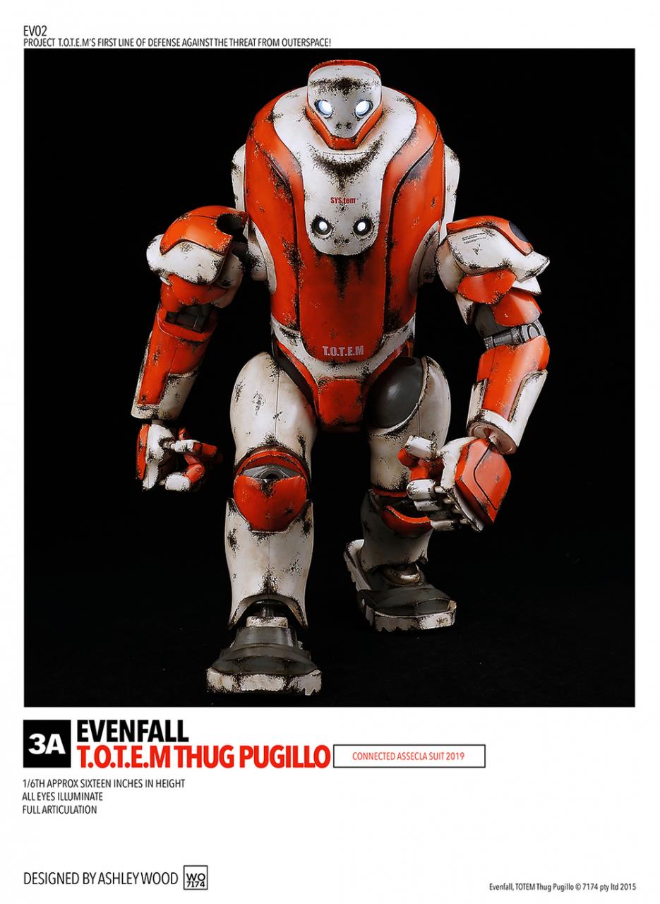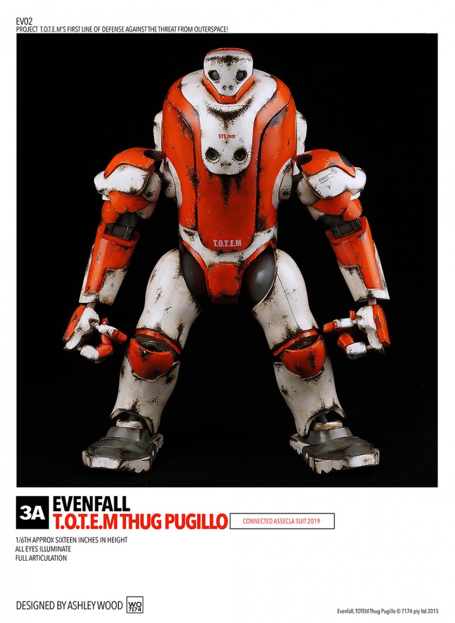 Artist Ashley Wood continues to roll out his unique creations under the ThreeA Toys banner, his latest 1:6th scale action figure being the Evenfall T.O.T.E.M. Thug Pugillo. This weathered orange and white robotic character stands approximately 16 inches (40.64cm) tall and is fully articulated and features light-up eyes. The Thug goes on sale at worldofthreea.com/3astockists next week priced at $320 USD, including free international shipping.