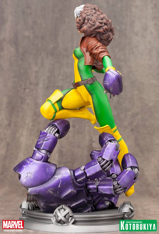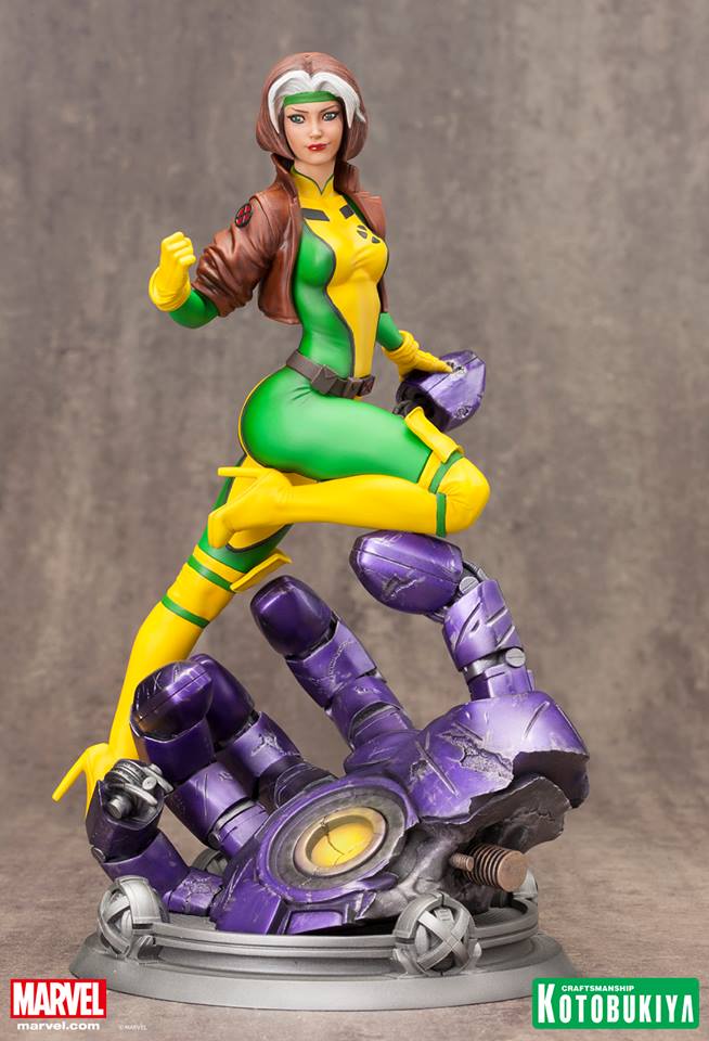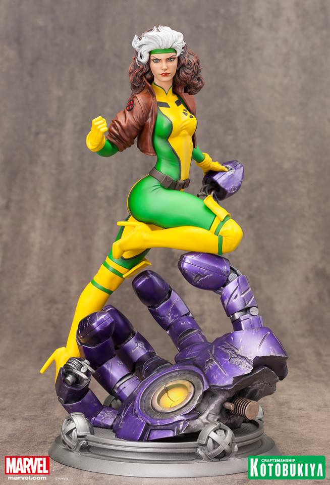 Kotobukiya’s presents the next piece in their growing X-Men Danger Room Sessions Fine Art Statue series: one of the most powerful mutants in existence, Rogue. The spirited mutant is captured in a great action pose, poised over the hand of a defeated Sentinel as she looks for the next threat. The mutant hero’s classic costume is beautifully recreated, with the bright green and yellow of the bodysuit standing out within her dark brown jacket. As an added bonus you can display the X-Woman in either of two of her most popular looks from the comics with alternate head portraits!