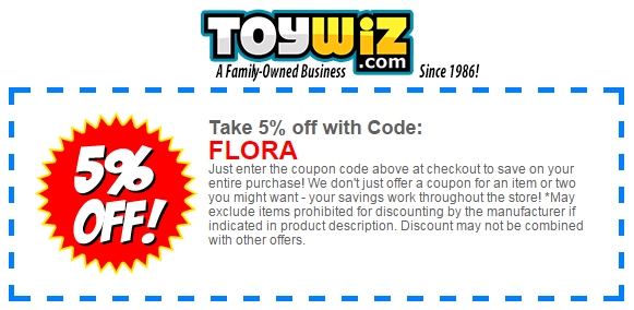 ToyWiz.com has thousands of in-stock items. Use the coupon code FLORA and receive 5% off your purchase! Shop from an incredible selection of the newest and most popular action figures, toys, and collectibles including: