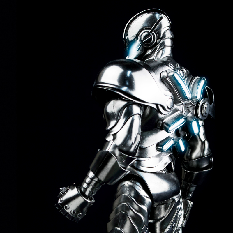 Following their release of Iron Man (see our story HERE), ThreeA Toys continues their 1:6th scale Marvel collection with Ultron. Designed by Ashley Wood, the robotic Marvel villain will stand 13 inches tall and will feature LEDs in his eyes, mouth and chest. Three versions will be offered: Classic (pictured), Stealth, and Ghost Editions.