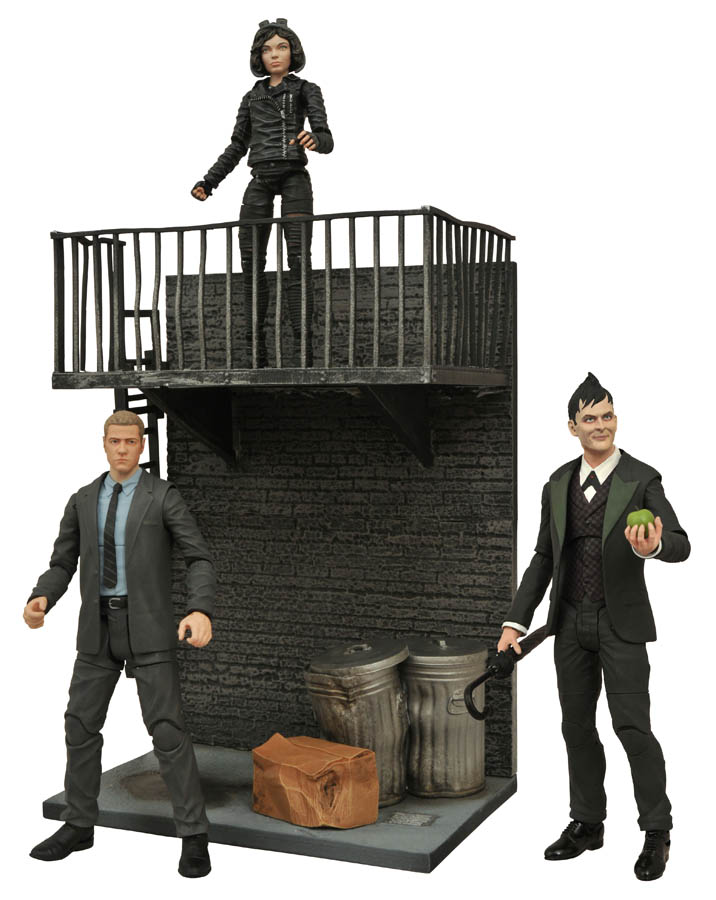 One of the hottest shows on TV is Gotham, a look at the crime-ridden streets of Batman’s hometown. Now, the hit show is an all-new line of Select action figures! Each 7-inch scale figure comes with character-specific accessories, as well as a deluxe diorama base representing a location in Gotham City: The Penguin comes with a pier, Jim Gordon comes with an alleyway, and Selina Kyle comes with a fire escape – connect Jim and Selina’s bases to form a larger scene! Each figure features approximately 16 points of articulation and comes packaged in the famous display-ready Select packaging, with spine art for easy shelf reference. Sculpted by Gentle Giant! (Item # MAY152171, SRP: $24.99/ea.)