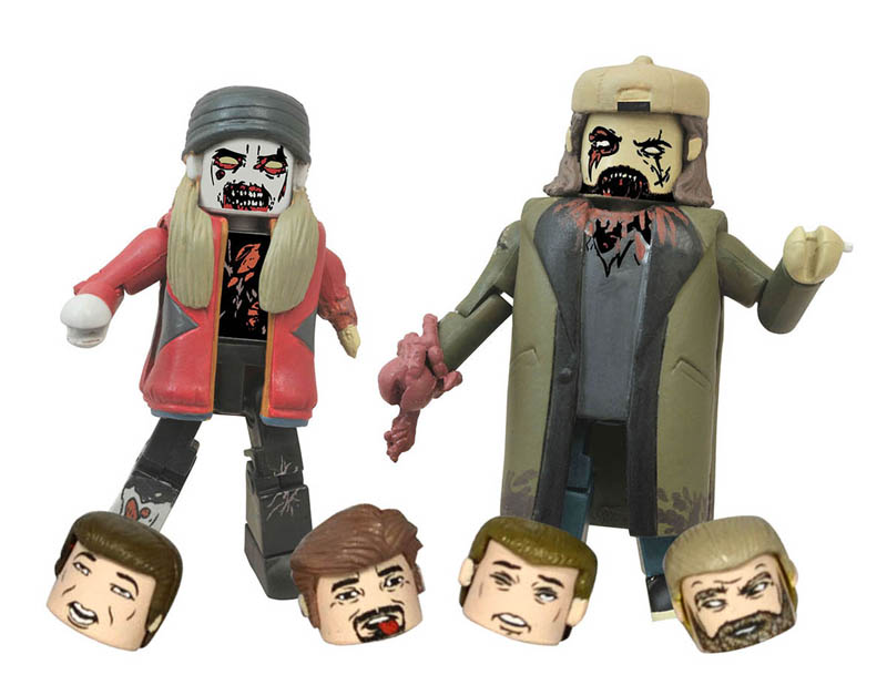 Jay and Silent Bob will never die! Literally! This all-new 2-pack of Minimates mini-figures features undead versions of America’s favorite comedy team, as seen in the movies, comics and cartoons of writer/director Kevin Smith. This set includes zombie-specific accessories, including a hunk of meat and the severed heads of four familiar victims. Each 2-inch Minimates mini-figure features 14 points of articulation and fully interchangeable (and removable) parts. Packaged on a full-color blister card. Designed by Art Asylum! (Item #MAY152176, SRP: $9.99)