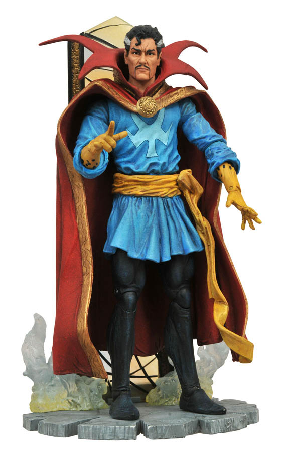 By the hoary hosts of Hoggoth! Marvel’s Secret Avenger, supernatural Defender, Sorcerer Supreme and soon-to-be cinematic superstar Dr. Stephen Strange is the newest comic-based action figure in the Marvel Select action figure line! Measuring approximately 7 inches tall with 16 points of articulation, Dr. Strange comes with a diorama display base depicting part of his Sanctum Sanctorum. Packaged in Select-style display packaging with spine artwork. Sculpted by Jean St. Jean! (Item #MAY152177, SRP: $24.99)