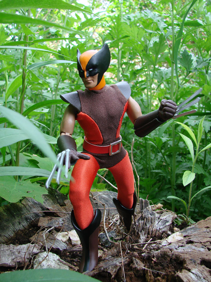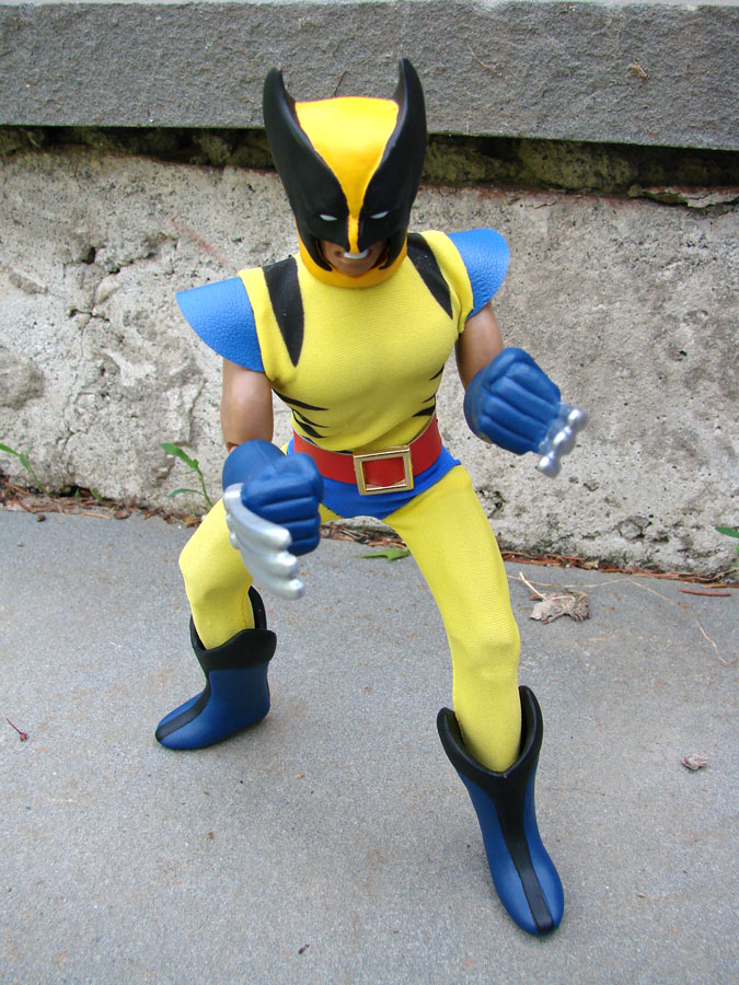 Despite making his debut in 1974, and gaining popularity after joining the X-Men in 1975, Wolverine didn’t get an action figure until 1984, after Mego closed its doors. So in order to re-create what an 8-inch, cloth-costume Mego action figure of the mutant would look like, EMCE and DST looked at other toys of that era, and created their own. The 1970s-style Wolverine action figure wears his classic blue-and-yellow costume, which is fully removable, including a removable mask. Once you take off that costume, you can dress him up in his brown costume or his civilian togs.