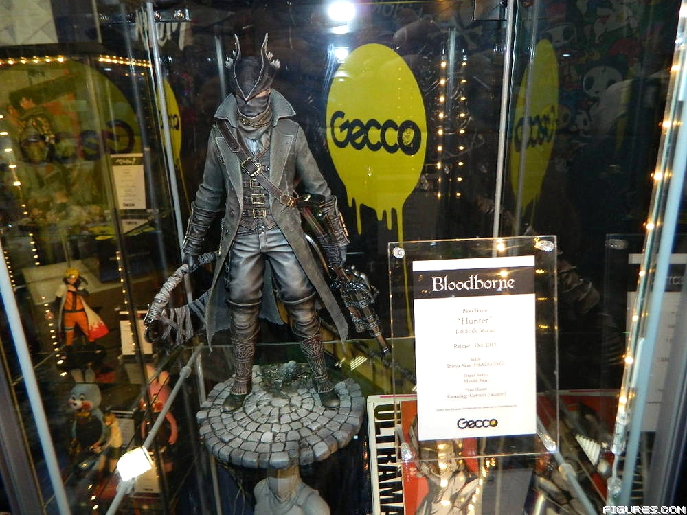 Japanese company Gecco made an impression on Comic-Con attendees with their collection of high-end 1:6th scale PVC statues. On display was the approved painted prototype for their newest Bloodborne statue, the piece depicting the "Hunter" from the hit video game. Available this December, the Bloodborne statue will be priced around $270.