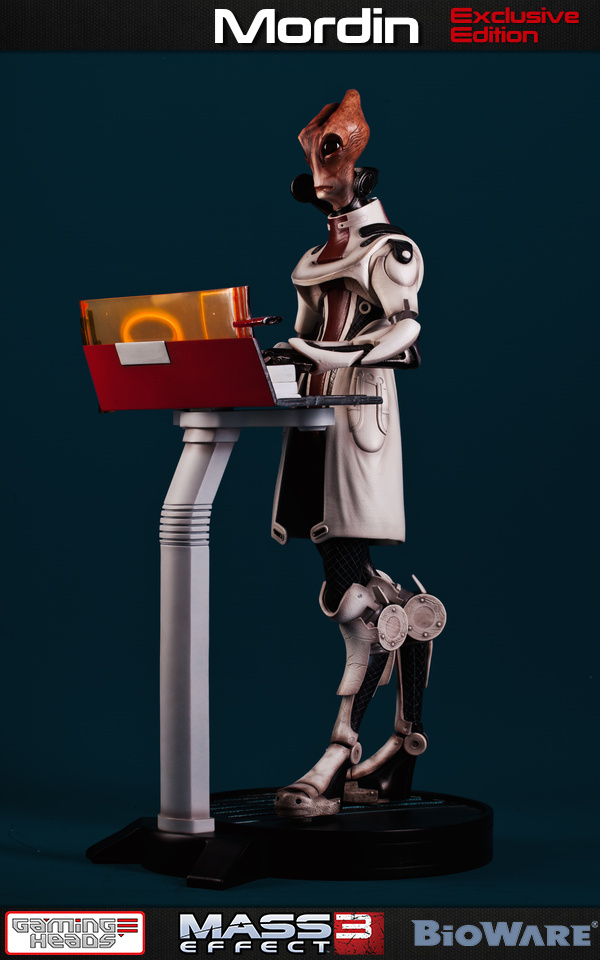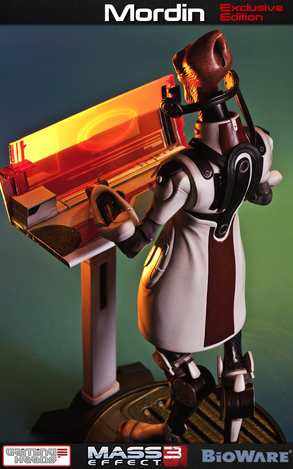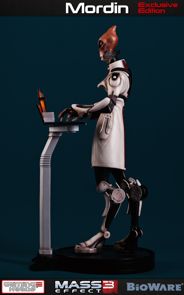 Two versions of Mordin will see release 2nd quarter 2016: a regular edition (limited edition of 1000 pieces, $339.99) and a Gaming Heads exclusive (LE 500, $359.99). The exclusive version of Mordin comes with an additional pair of typing hands, his trusty console and stand. Exclusive version includes arms from the regular version too, so you can switch from thinking pose to typing on console pose.