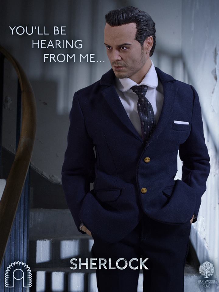 BIG Chief Studios present their newest 1:6th action figure based on the British crime drama Sherlock: Jim Moriarty. The 1:6 Jim Moriarty collector figure will be available for pre-order at bigchiefstudios.co.uk on Monday, August 24th at 6 pm (UK time). The figure will be available as both a Limited Edition (£179.99 incl. VAT / £149.99 excl. VAT) and a special hand-numbered Signature Edition, signed by actor Andrew Scott (£219.99 incl. VAT / £183.33 excl. VAT).