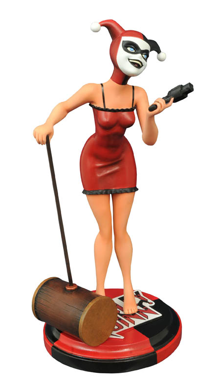 Time for some Harley Quinn romance! The psychologist once known as Harleen Quinzel may have the hots for The Joker, but the Clown Prince of Crime doesn’t always realize what he’s got! This 12” resin statue of Harley Quinn is based on her look in the timeless New Batman Adventures episode “Mad Love,” and depicts a dolled-up Harley wielding her mallet and pistol. Packaged with a certificate of authenticity in a full-color box, this statue is limited to 3,000 pieces and is a must-have item for any fan of Batman, Harley or the Joker himself. Sculpted by Clayburn Moore! (Item #AUG152310, SRP $150.00)