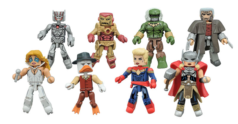 The Secret Wars are upon us! With Earth transformed into a fractured Battleworld, with various regions pulled from a variety of alternate realities, DST has created an assortment of Marvel Minimates that spans the globe! From the Armor Wars world of Technopolis, Iron Man 2020 faces off with Ultron from the Age of Ultron’s Perfection! From the Wastelands, Old Man Logan takes on Dystopia’s Maestro Hulk, from Future Imperfect! From the world of Arcadia, A-Force’s Captain Marvel teams up with the new Thor, of the Thor Corps! And finally, A-Force’s Dazzler partners with New Quack City’s resident detective, Howard the Duck! Each 2-inch Minimates mini-figure has up to 14 points of articulation and features fully interchangeable parts and accessories. Each 2-pack comes in a full-color window box. Designed by Art Asylum! (Item #AUG152318, SRP: $9.99/ea.)