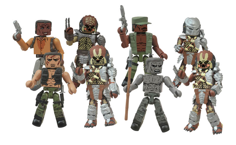 Clear the LZ, because a chopperload of new Predator Minimates are coming in for a landing! The first assortment of Predator Minimate 2-packs features the original Predator movie’s Dutch vs. Unmasked Predator, Dillon vs. Masked Predator, Predator 2’s Harrigan vs. City Hunter Predator, and a rare one-per-case Mud-Covered Dutch vs. War Cry Predator! Each 2-inch Minimates mini-figure has 14 points of articulation and features fully interchangeable parts and accessories. Each 2-pack comes on a full-color blister card. Designed by Art Asylum! (Item #AUG152315, SRP: $9.99/ea.)