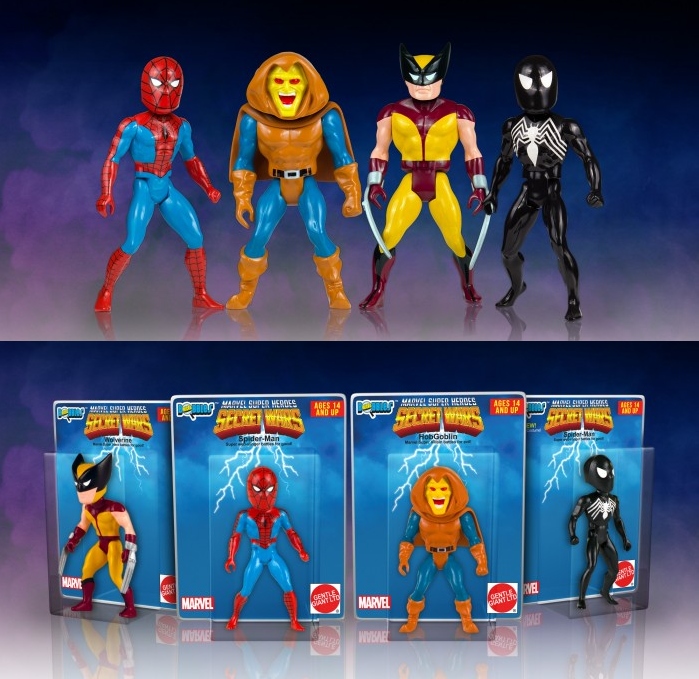 Characters in the first wave include Spider-man, Wolverine, Hobgoblin, and Black Costume Spider-man. These are being sold as a 4-piece set priced at $11.96.