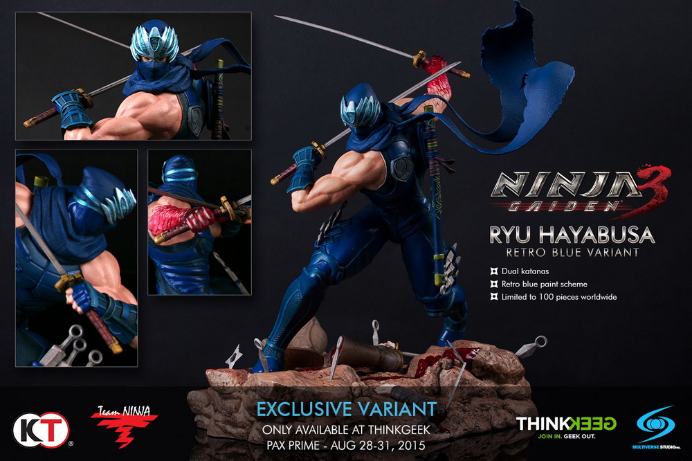 Multiverse Studio Inc. revealed today that two new exclusive variants of their Ninja Gaiden 3 Ryu Hayabusa statue (see our story on the standard edition HERE) will be available exclusively from ThinkGeek. Visit the ThinkGeek booth at PAX Prime 2015 (Booth Sky9) to get your limited edition Ryu Hayabusa Bludgeoning variant and Retro Blue variant.
