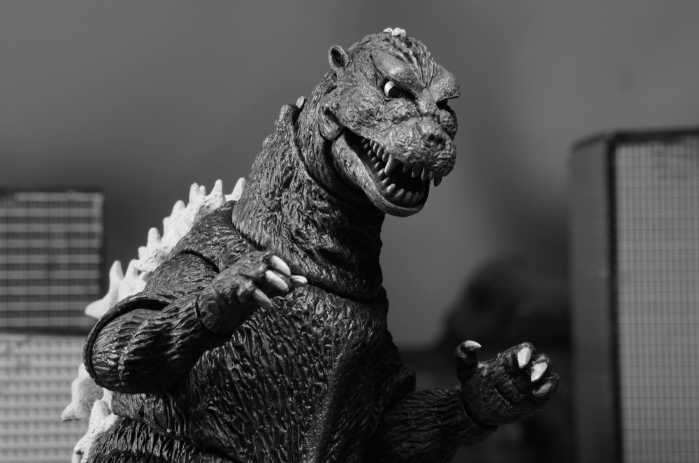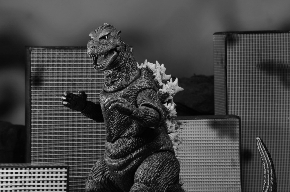 NECA has released a fun photo shoot of their latest Godzilla action figure: Godzilla 1954. Based on the black-and-white Godzilla movie, released in 1954, the figure stands over 6″ tall, with a head-to-tail measurement of over 12″ long. It features a bendable tail and nearly 30 points of articulation.