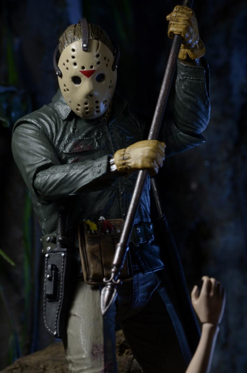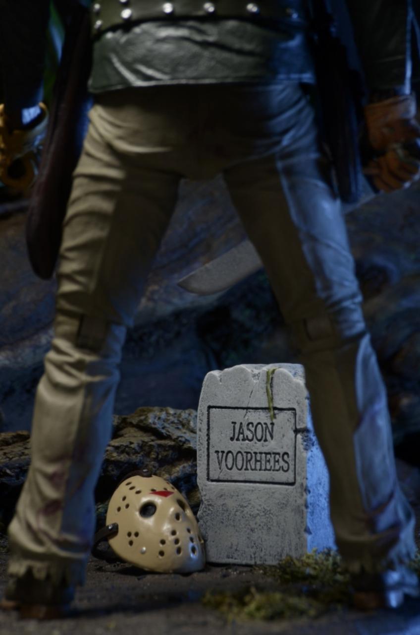 NECA has released tons of new photography of their upcoming Friday the 13th Part 6 Ultimate Jason Voorhees Action Figure. First shown at San Diego Comic-Con as an unpainted prototype (HERE), the figure depicts Jason as he appeared in the 1986 film Jason Lives. This deluxe 7” scale action figure features a gruesome, freshly unearthed sculpt and over 25 points of articulation. It’s loaded with accessories, including a removable mask, a machete and a knife that both fit into sheaths on his belt, the fence post that reanimated him and his tombstone. Packaged in a collector-friendly Deluxe 30th Anniversary window box.