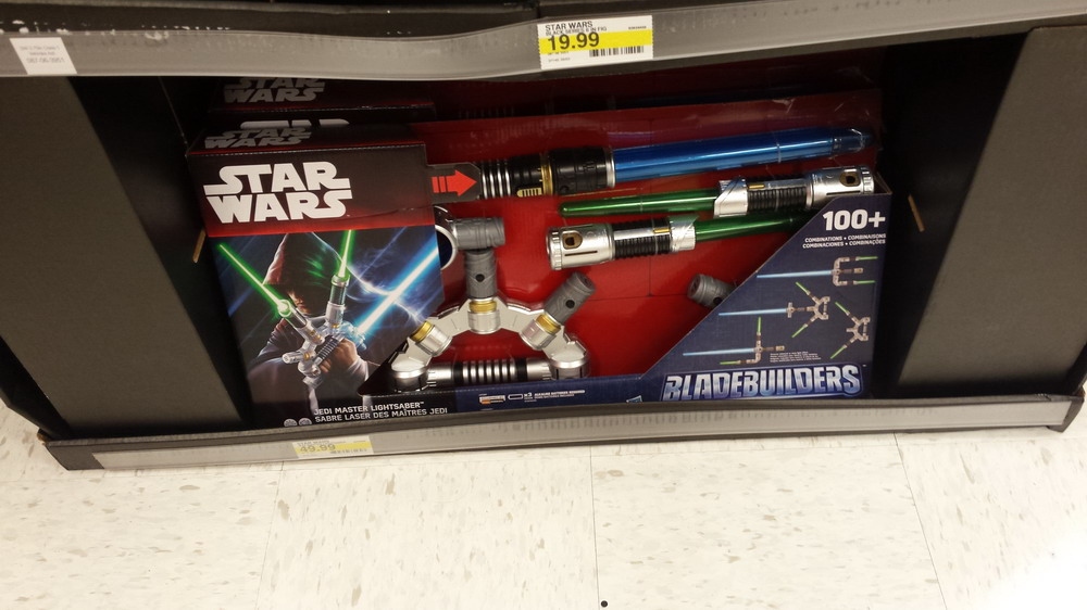 Funko's Pop! were cute and diverse in character selection (while they lasted). There was some LEGO and a bunch of these deco lamps in the shape of character helmets. It was cool to see Micro Machines again. Some kid-friendly role play lightsabers and a trully stunning Force FX Kylo Ren saber ($199.99 - only two in stock). Oh, and 3 3/4" Black Series figures? Those also disappeared faster than the Millennium Falcon jumping into lightspeed. I never saw an X-Wing Fighter or a TIE Fighter (except for the paper displays hanging from the ceiling).