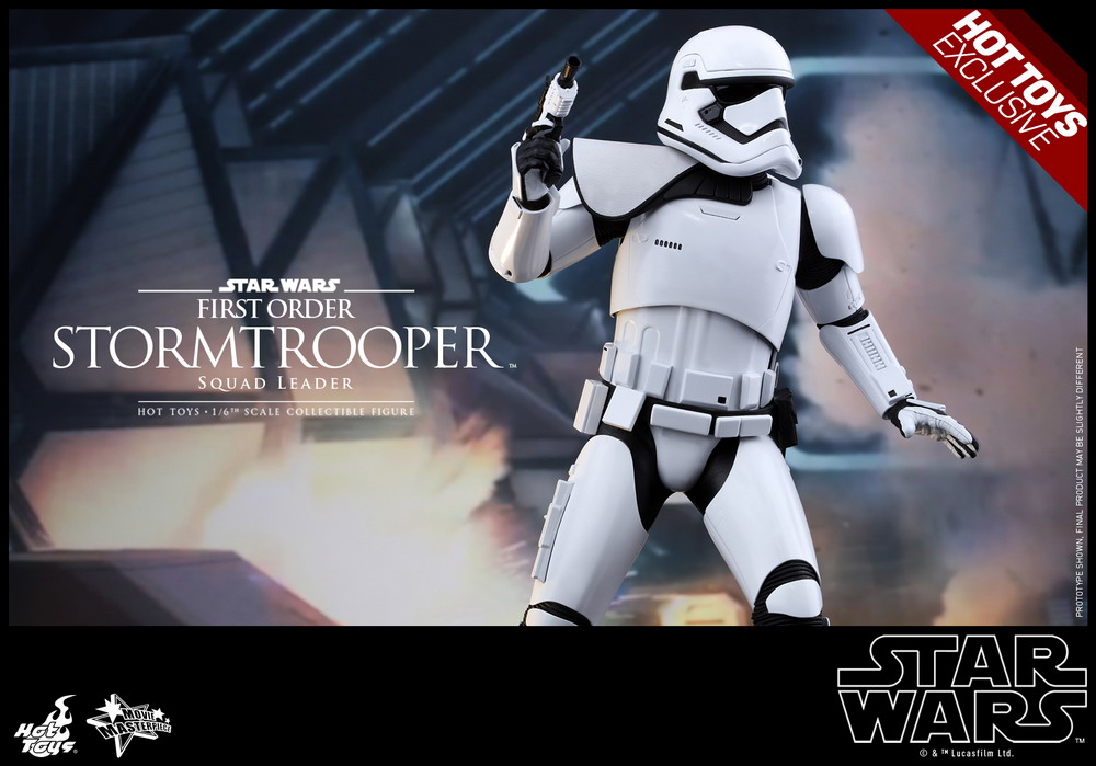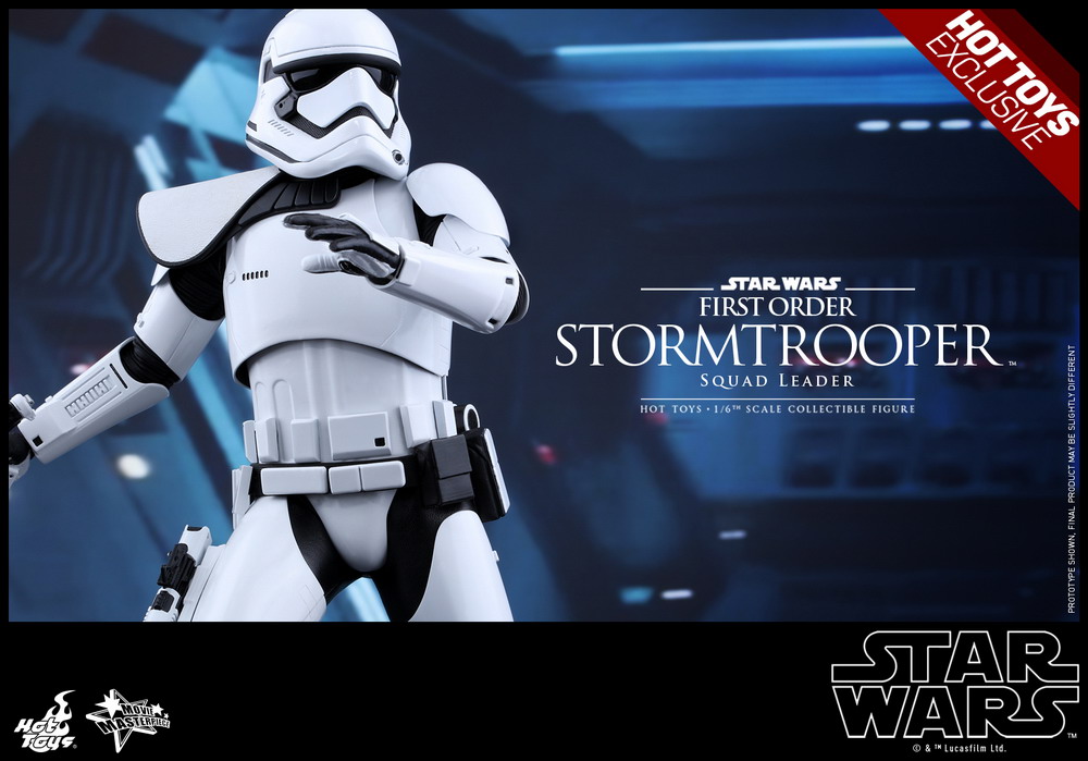 Following yesterday's reveals of Kylo Ren, First Order Stormtrooper and Heavy Gunner Stormtrooper, Hot Toys surprises Star Wars fans with one more 1:6th scale Force Awakens figure: First Order Stormtrooper Squad Leader.